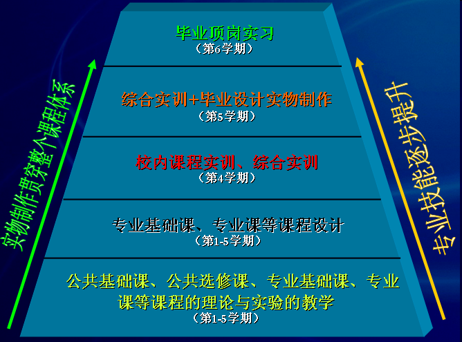 课程体系设置突出各个实践教学环节,以实物制作、实操训练贯穿整个教学体系。