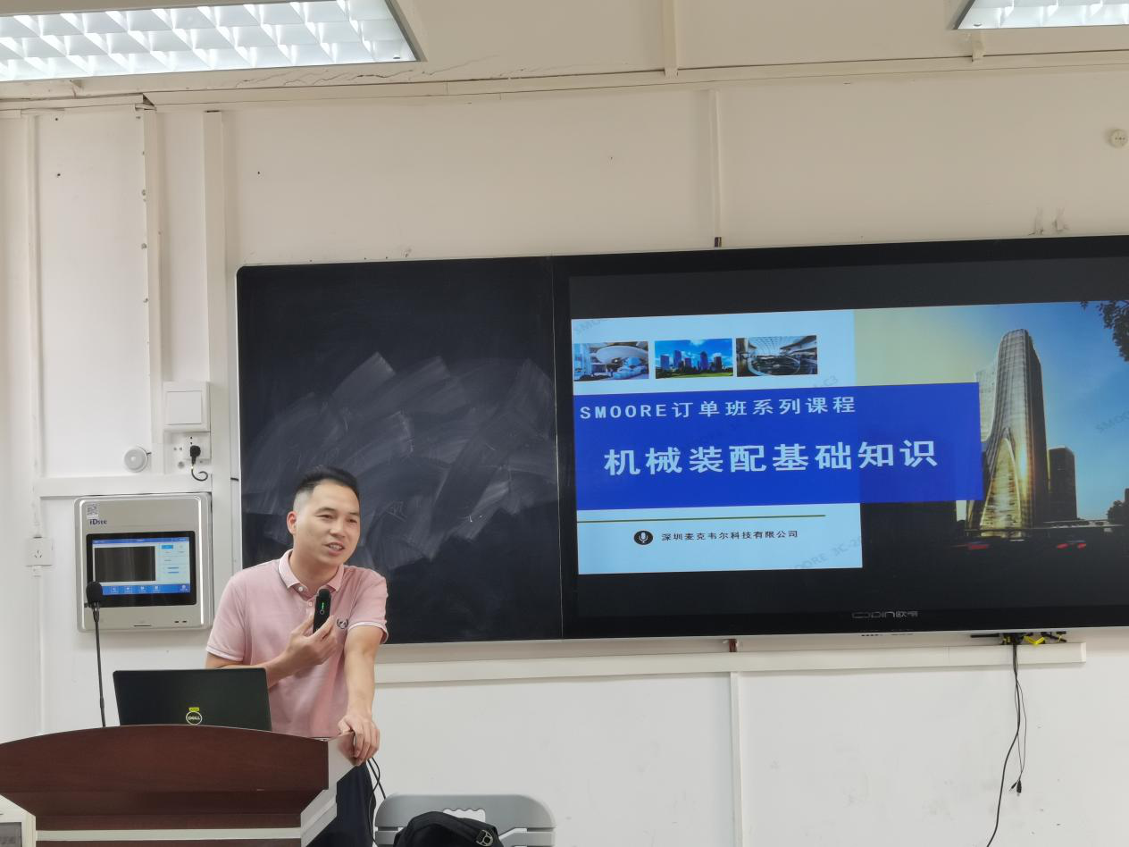 2022年10月15日,太阳成集团tyc第二届“麦克韦尔科技订单班”企业课程正式开课,此次课程在求真楼801室开展。深圳麦克韦尔科技有限公司黎军主管、企业讲师田志超、工程师郑娅军、第二届“麦克韦尔科技订单班”员工参与了此次课程。