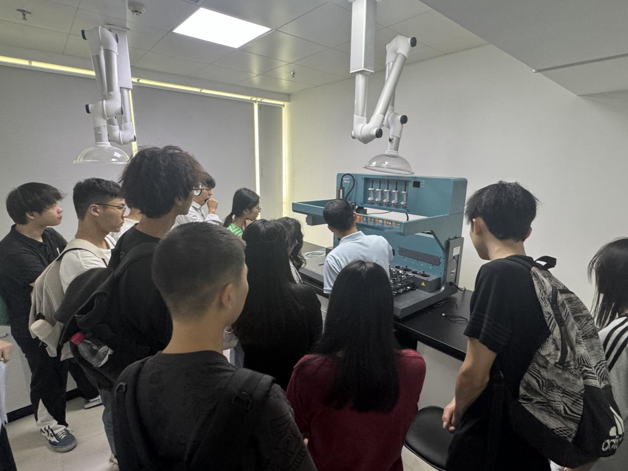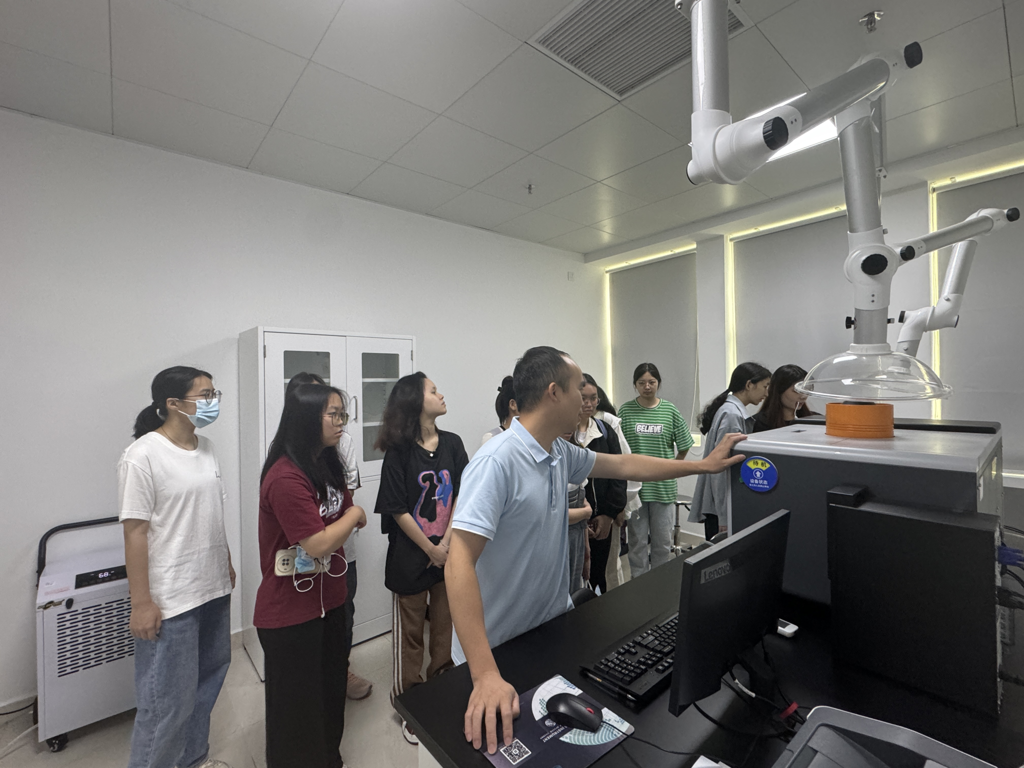 活动当天,太阳成集团tyc122ccvip党总支副书记陈倚重带领党员教师代表及2022级食品检验检测班员工,在生态环境监测站工作人员的引导下,参观气相分子吸收光谱室等实验室,了解生态监测仪器设备及流程。