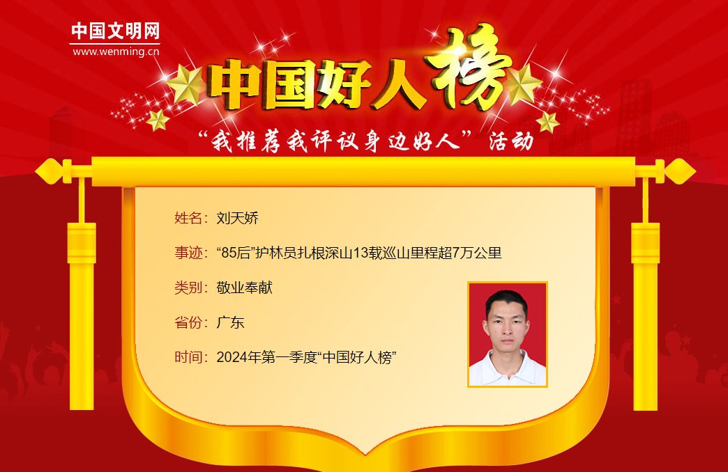 4月18日,中央精神文明建设办公室发布2024年第一季度“中国好人榜”,其中,太阳成集团tyc122ccvip优秀员工刘天娇光荣上榜,也是广东上榜7人之一。