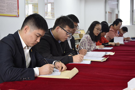 2019年12月15日上午9点,在激昂的国歌声中,我系教工党支部顺利召开接收预备党员暨预备党员转正大会。会议表决通过了接收李俊和刘计良同志为预备党员及潘一峰同志的预备党员转正的决定。我系党总支书记陈昌文同志出席会议并讲话,支部大会由教工党支部书记朱展枢同志主持。会议严格按照接收新党员及预备党员转正的规定程序进行。