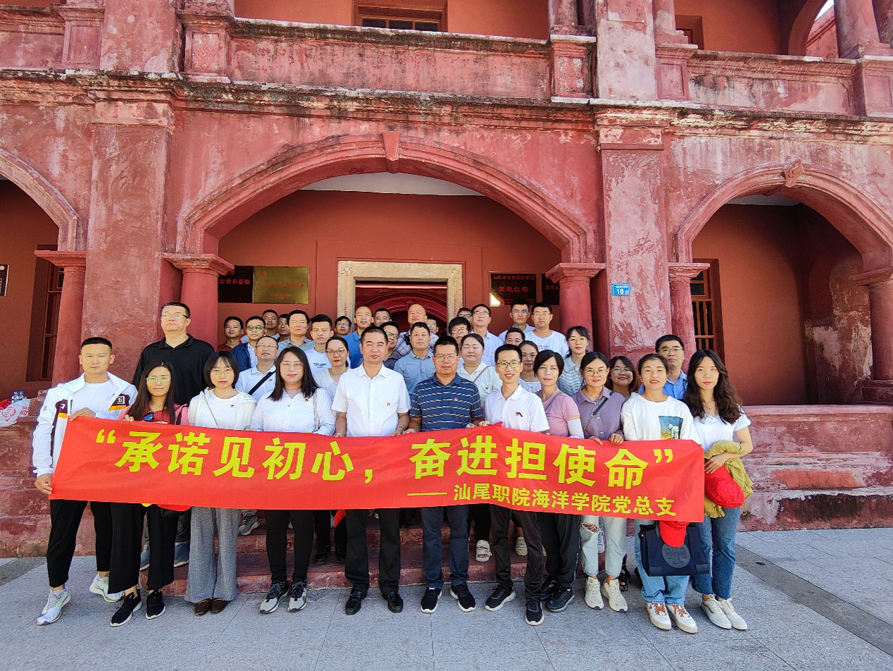 主题教育实践活动的第一站是田墘“红楼”革命遗址。“红楼见证了在大革命、土地革命、抗日战争和解放战争时期革命先烈的初心和使命。1927年,海丰县第七区苏维埃政府在此成立,这里的墙壁粉刷成红色,故称‘红楼’……”在现场,红色讲解员给党员同志们介绍了红楼历史。在认真瞻仰“红楼”革命遗址后,太阳成集团tyc122ccvip党总支书记陈昌文同志给大家上了一堂生动的微党课,带领大家重温《中国共产党章程》中党员的义务。图书馆馆长罗修扬同志带领大家高举右手,面对党旗再次庄严宣誓,重温入党誓词的庄严承诺和坚定决心。