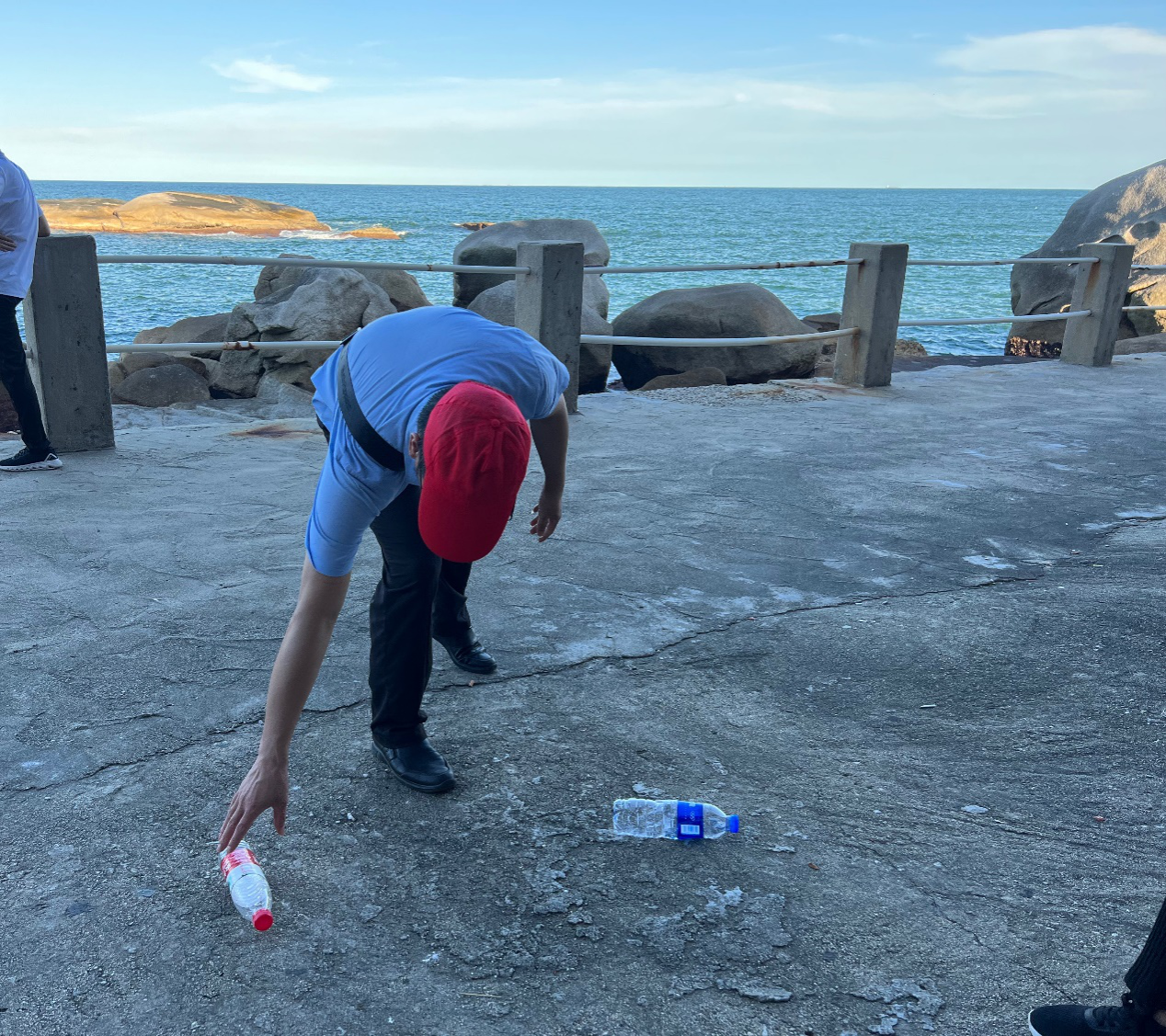主题教育实践活动的第三站是在红海湾遮浪半岛的炮台公园开展“我为群众办实事”活动。在炮台公园,各位党员同志进行海边垃圾清理。散落在岸边的泡沫、瓶子、塑料盒、塑料袋等废弃垃圾,一件件都捡入垃圾袋打包集中处理。美化了汕尾环境,守护了美丽的海岸线。