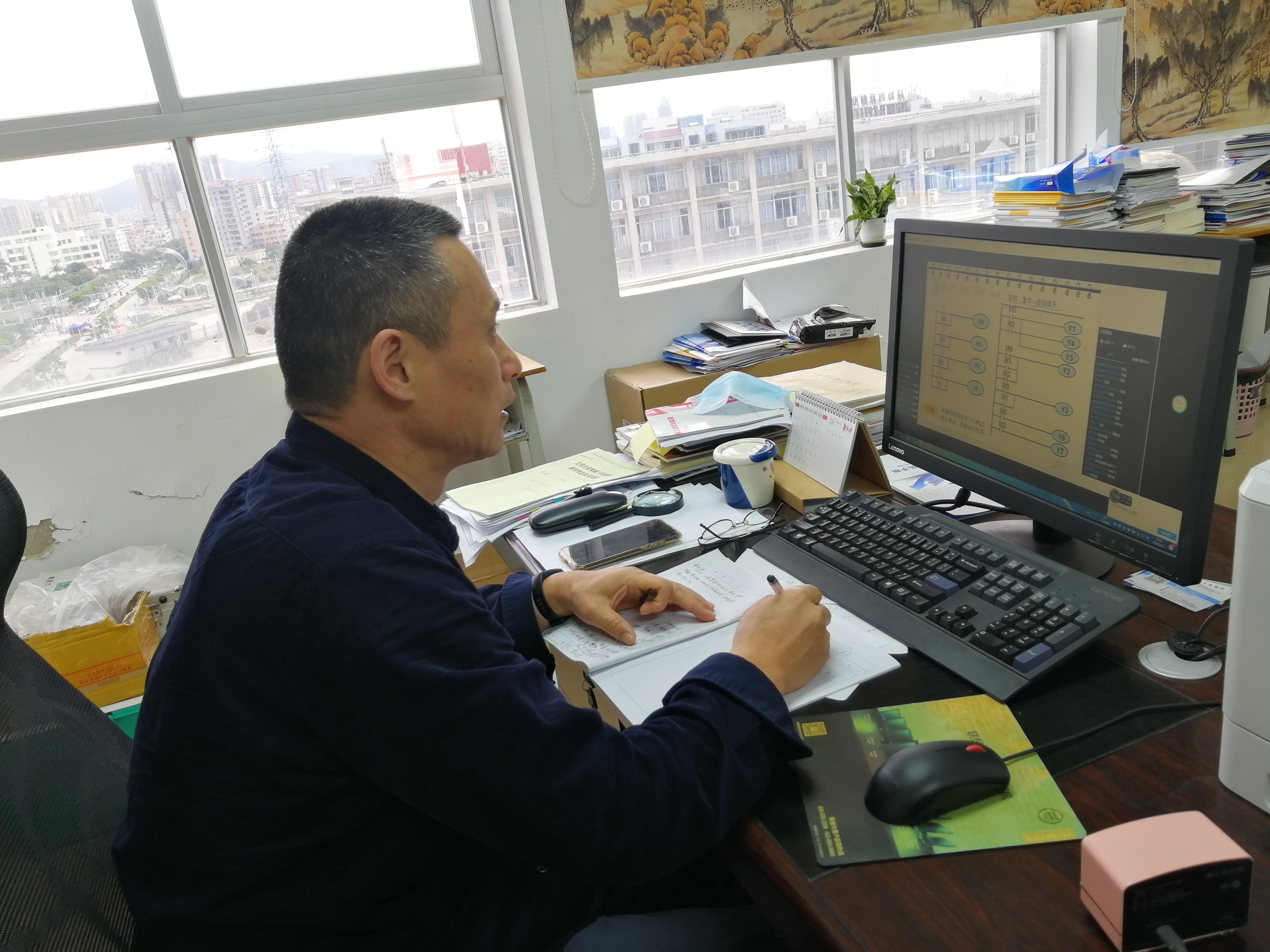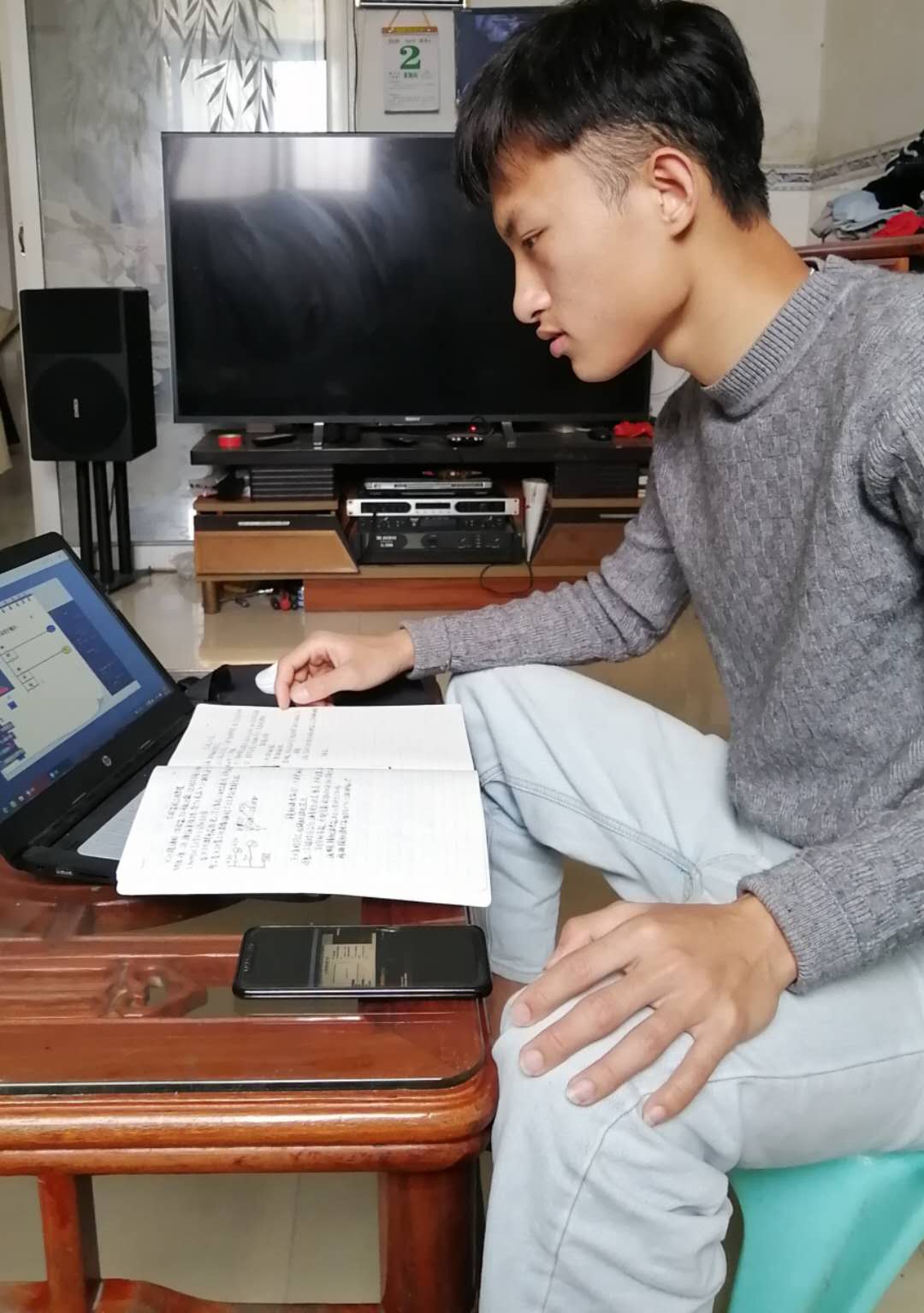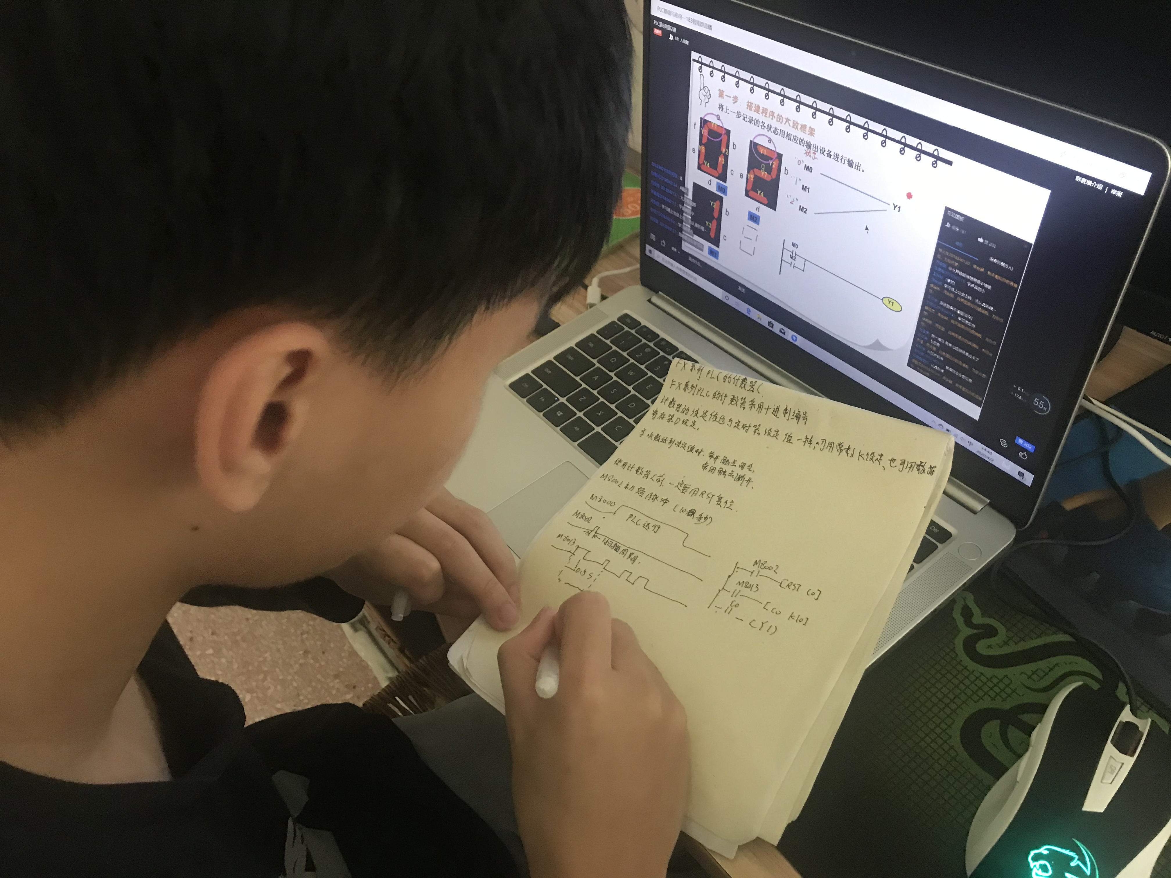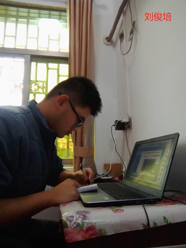 183智能班刘俊能同学在认真听课做笔记
