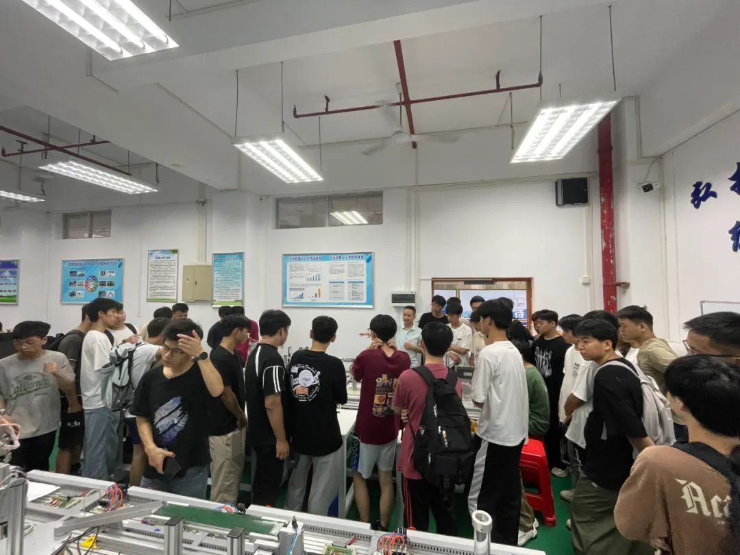 9月9日上午,公司2024级新生在各班班助的带领下前往工业机器人实训室、自动化产线实训室、PCB制作实训室、SMT生产实训室、电子产品装配与检测等实训室参观,各实训室负责人对实训设备,所涉及课程等进行了详细介绍。
