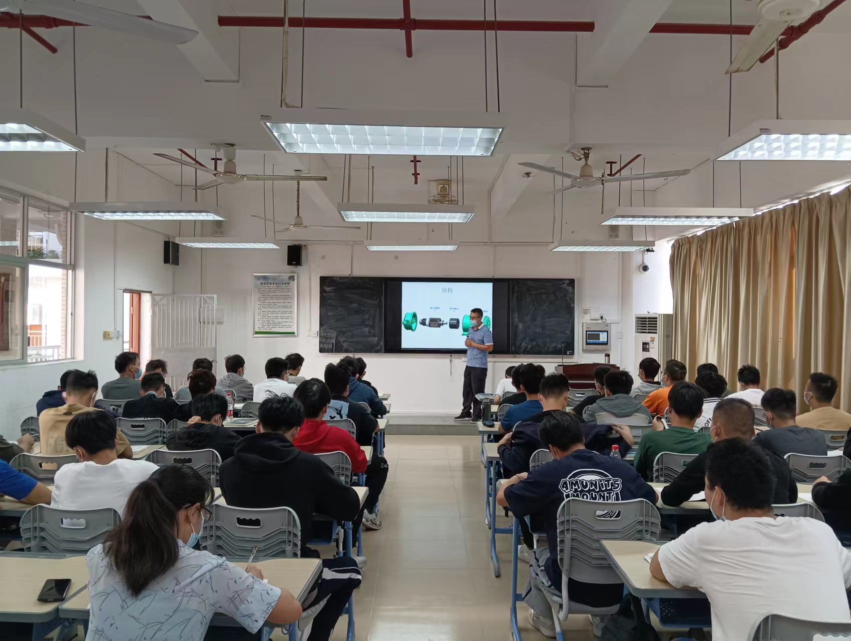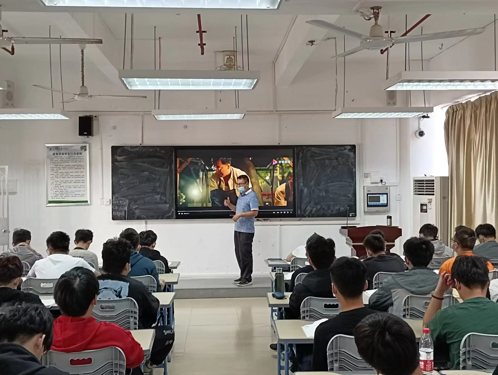 视频播放完毕后,王青林老师告诉同学们,影片主角的原型就是五星红旗电动旗杆的设计者、潮汕地区的骄傲——林治远总工程师。是他顶着巨大的压力,确保了开国大典的顺利进行。他深情地希望同学们能够努力学习,不断进取,继承和发扬老一辈机电人的细致、专注、敬业、创新精神,争当大国工匠。
