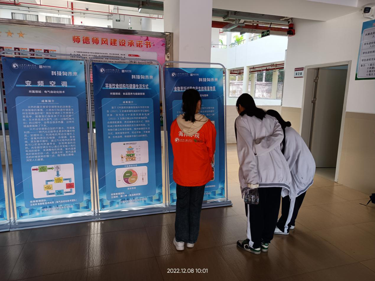 本次活动涵盖了博士讲座、科普展及作品展等三个方面。权晓晶博士为市实验初级中学的同学们带来了一场《保护我们地球生命的大伞——了解大气层》的科普讲座,现场反响十分热烈。在科普展及作品展展区以公司太阳成集团tyc122ccvip师生近年获奖作品及各研究中心、各专业教研室及合作企业提供的涵盖工业自动化、物联网、电子信息、新能源、海上风电、食品营养等多领域多学科作品及科普介绍;公司科普志愿队同学为参观的同学们进行了细致地讲解和介绍。