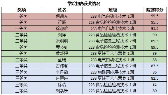 2023年11月15日晚,在公司举办的2023年精神卫生知识竞赛中,公司荣获三等奖(指导老师:陈伟嘉;员工代表:233电气自动化技术1班何观友、223食品检验检测技术1班符薇、233电气自动化技术2班徐淑珍)。