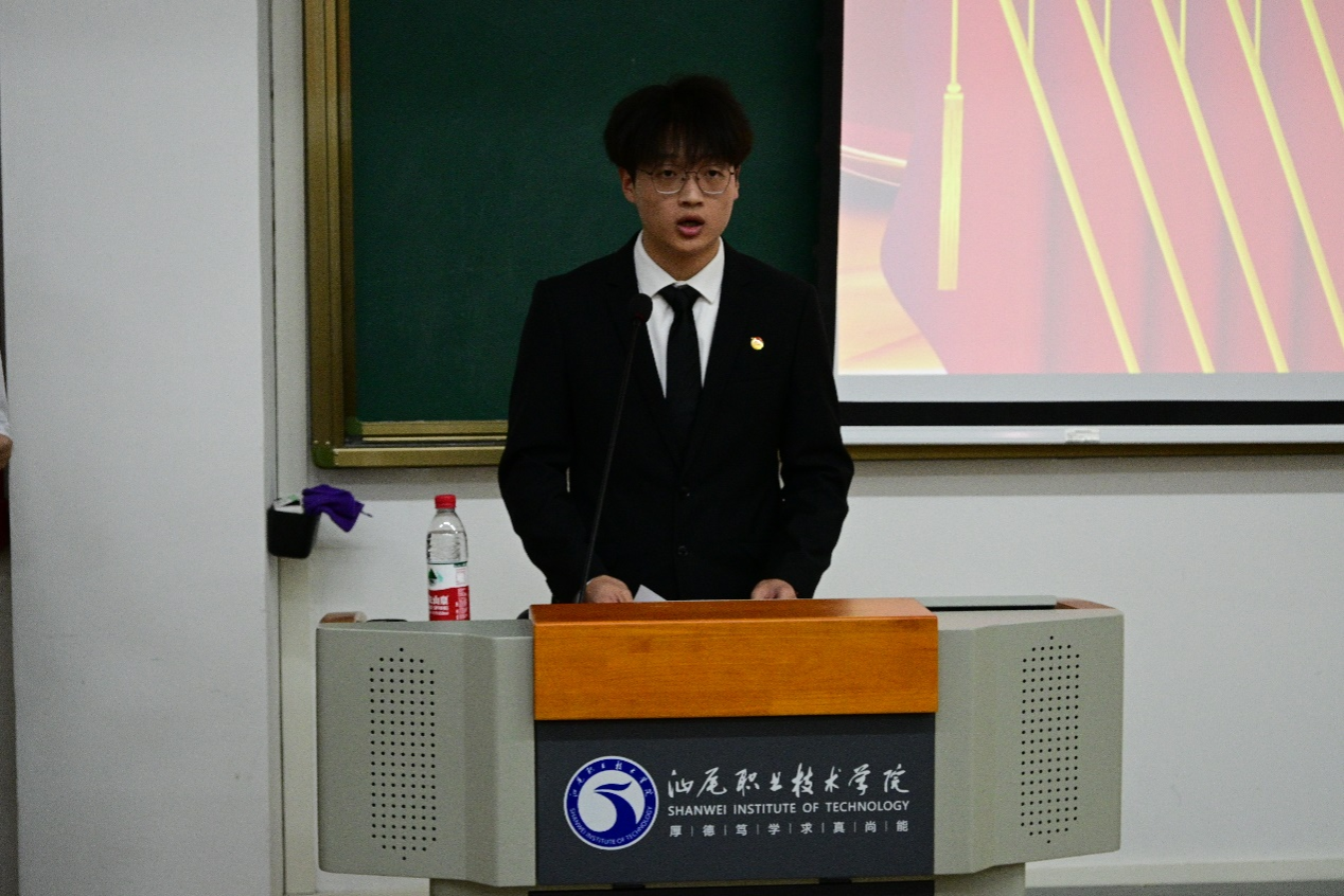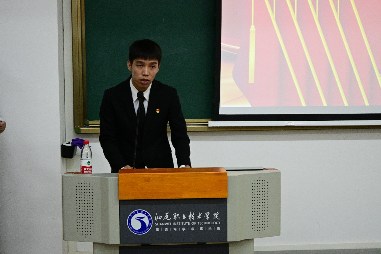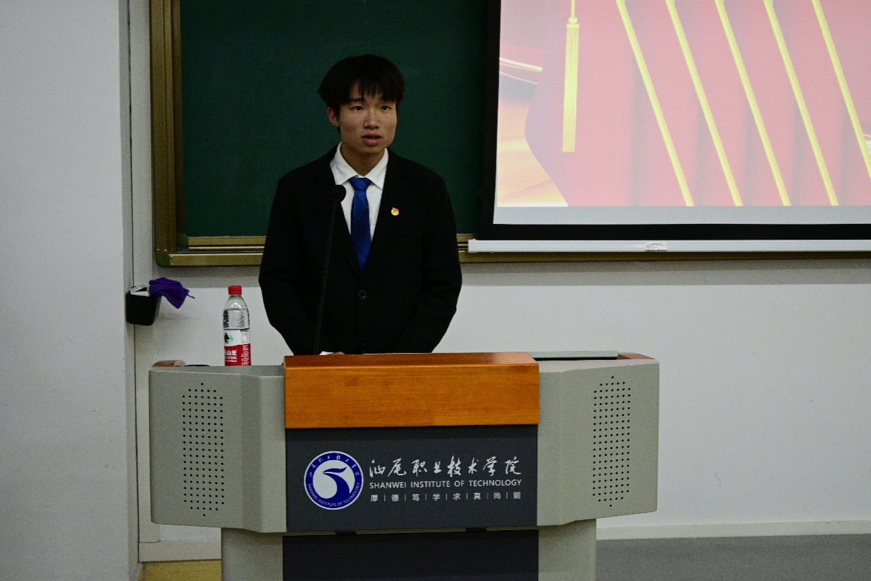新一届太阳成集团tyc122ccvip团委员工兼职副书记李子文同学上台发言