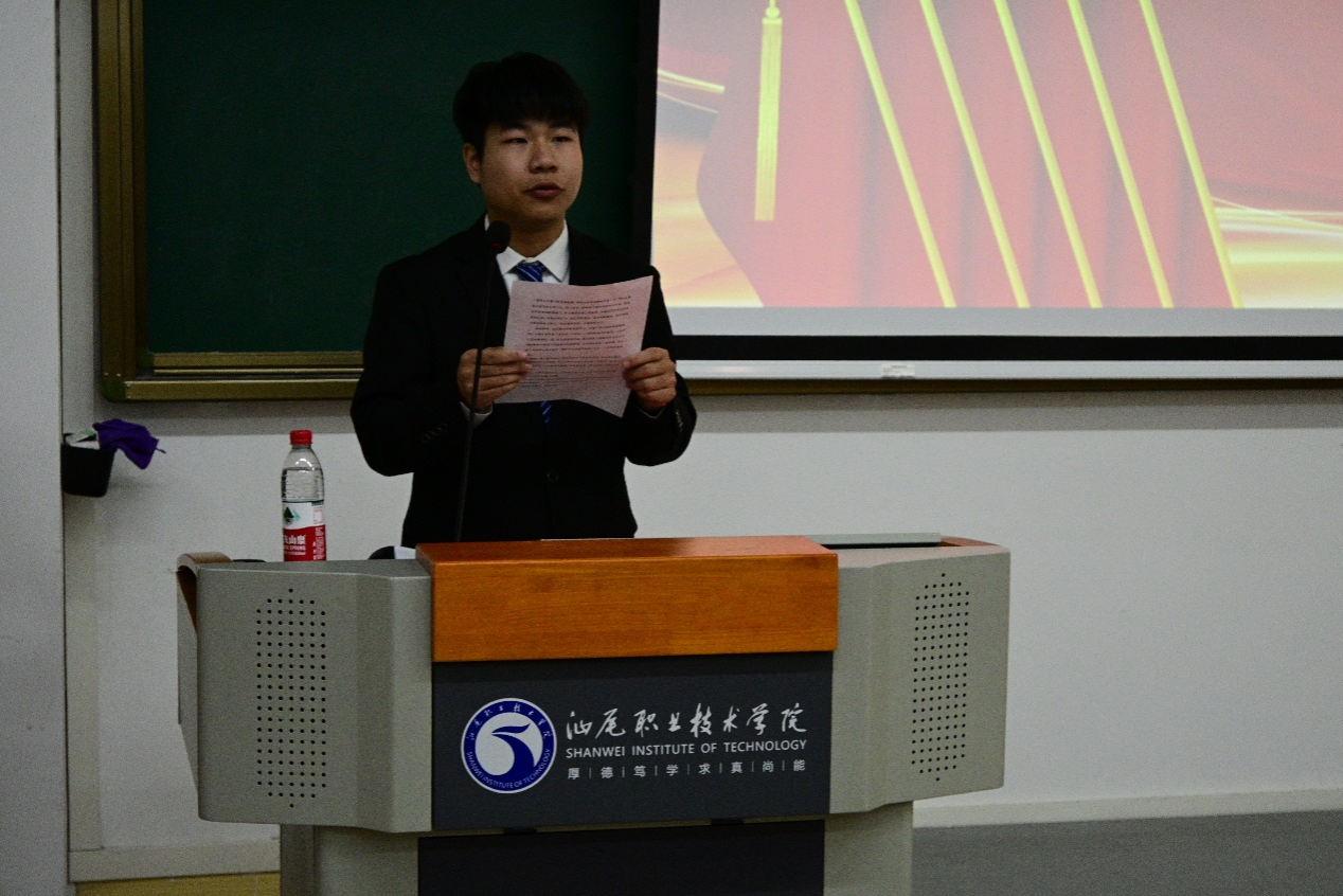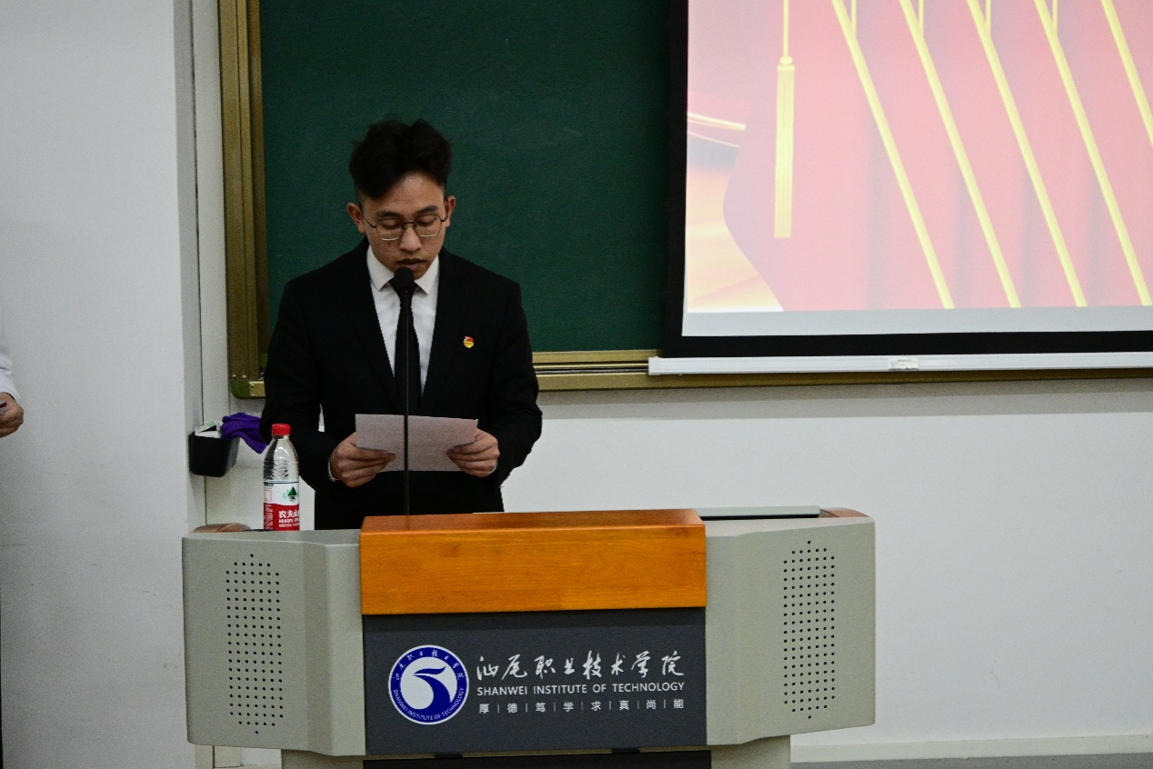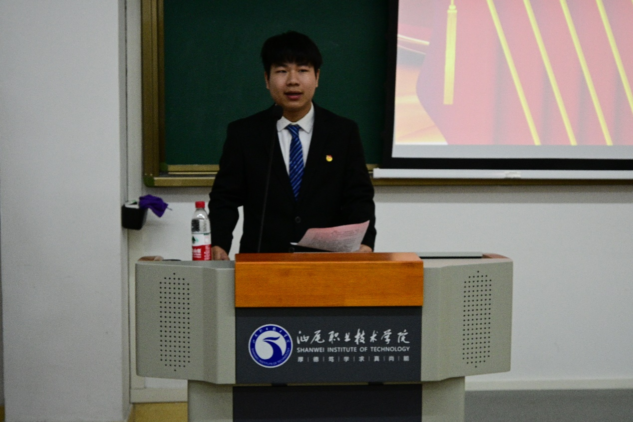 新一届太阳成集团tyc122ccvip团委员工兼职副书记李子文同学上台发言