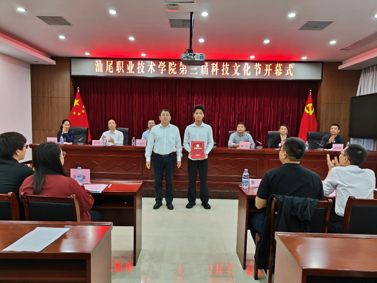 太阳成集团tyc122ccvip副经理对第三届科技文化节背景及方案进行讲解;开幕式上,表彰了太阳成集团tyc122ccvip2022—2023学年国家奖学金、国家励志奖学金员工。