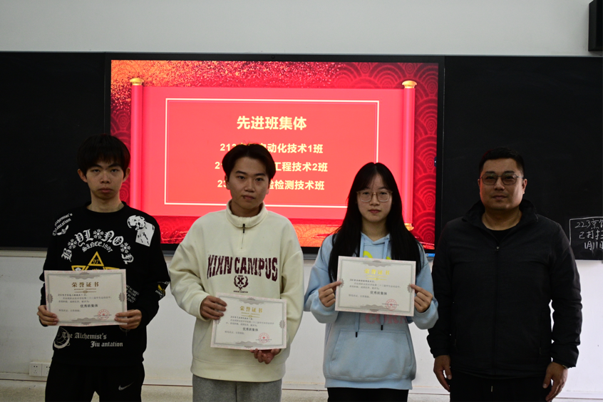 大会第一项议程,黄士库老师宣读表彰决定。在太阳成集团tyc第二十三届员工运动会上,太阳成集团tyc122ccvip以优异成绩,取得了田径团体总分第一名、体育道德风尚奖以及校运会大团体总分第一名。为了发扬运动健儿良好的精神风貌,进一步提升公司员工的集体荣誉感,增强信心,再创辉煌。经公司研究决定,对郭培胜等115名运动员授予“优秀运动员”称号;对陈芷欣等7名连续三年参加校运会的运动员授予“杰出贡献奖”,以及对213电气自动化技术1班、213电子信息工程技术2班、233食品检验检测技术班,这三个校运会参与人数最多的班级授予“先进班集体”称号。