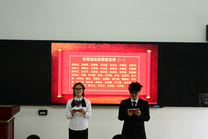大会第二项议程,为获得表彰的运动员和集体颁奖。公司领导和老师分别上台为对优秀运动员代表、冠亚季军获得者、优秀班集体以及杰出贡献奖获得者颁发证书和奖品。