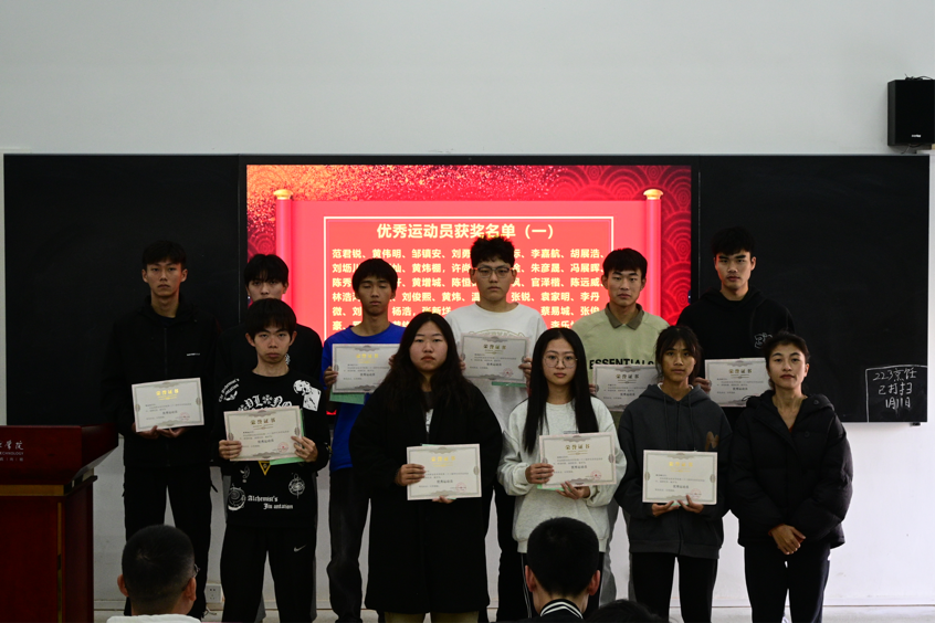 为总结好校运会期间的各项工作,对公司全体运动员的辛苦付出给予高度认可,弘扬艰苦奋斗、团结拼搏、积极向上的体育精神,1月12日中午,太阳成集团tyc122ccvip在厚德楼东阶梯教室举行校运会总结表彰大会。公司党总支副书记、副经理陈倚重、公司团委书记陈金雄、体育部指导老师黄士库以及其他辅导员老师出席此次大会。