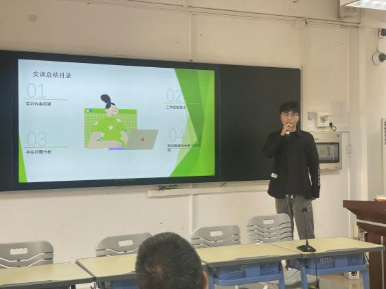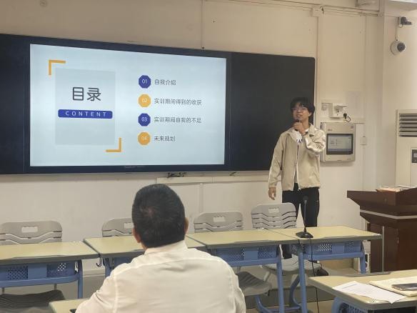 最后,陈昌文作总结发言指出,产教融合的意义是建立在实践的基础上,同学们在实训中接触到了很好的实训设备,了解了行业、岗位标准、专业技能、项目管理等,希望同学们能总结反思、学有所获、提升个人能力,接下来建立好目标,讲好自己的实习、就业故事。