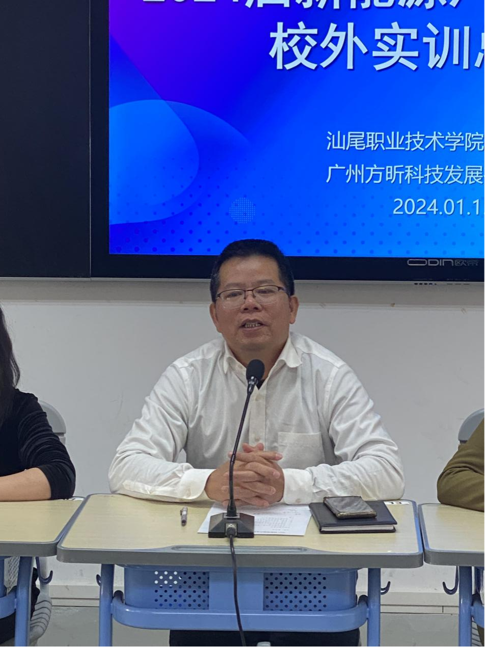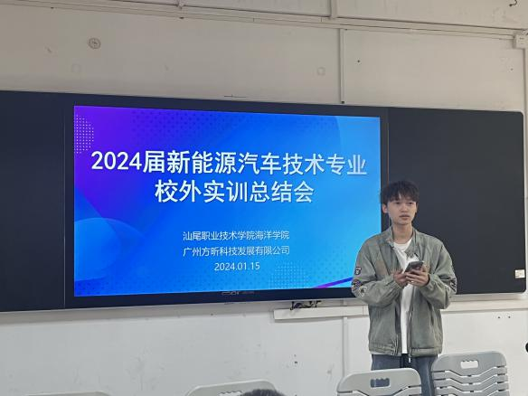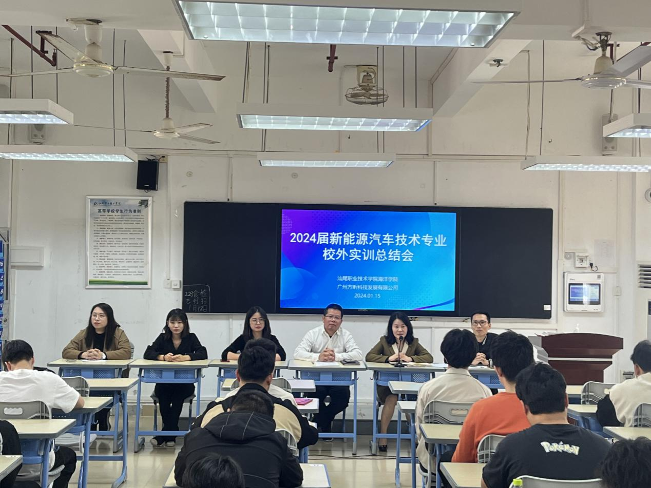 2024年1月15日,2024届新能源汽车技术班校外实训总结会在求真楼803举行,公司陈昌文经理、校员工处叶菲菲副处长、方昕科技甘沛玉总经理、公司陈倚重副经理、陈敏敏副经理等领导出席了会议。会议由陈倚重副经理主持。