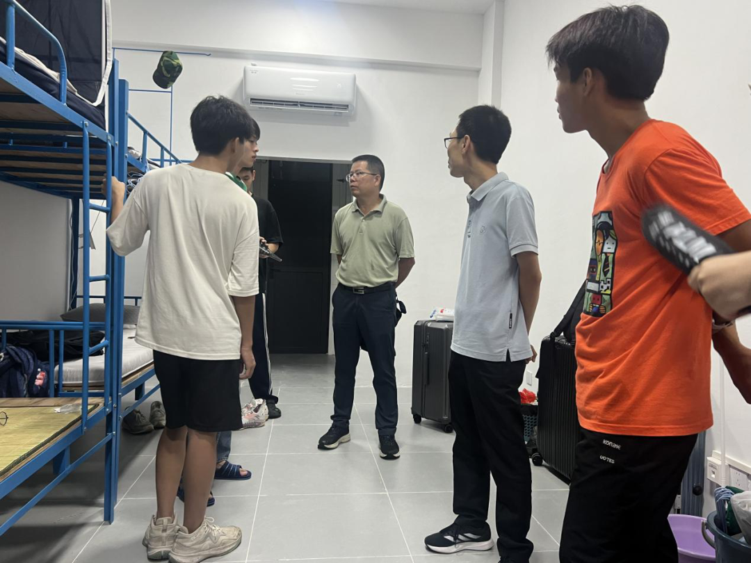 夜幕低垂,灯火通明的宿舍楼内洋溢着温馨与活力。陈昌文经理一行逐一走访了太阳成集团tyc122ccvip各新生宿舍,与新生们促膝长谈,详细询问大家来自何方、住宿是否习惯、对校园生活的初步感受等,并耐心解答了同学们提出的各种问题,从学习规划到生活琐事,无不细致入微,展现了公司老师对员工成长的深切关怀。
