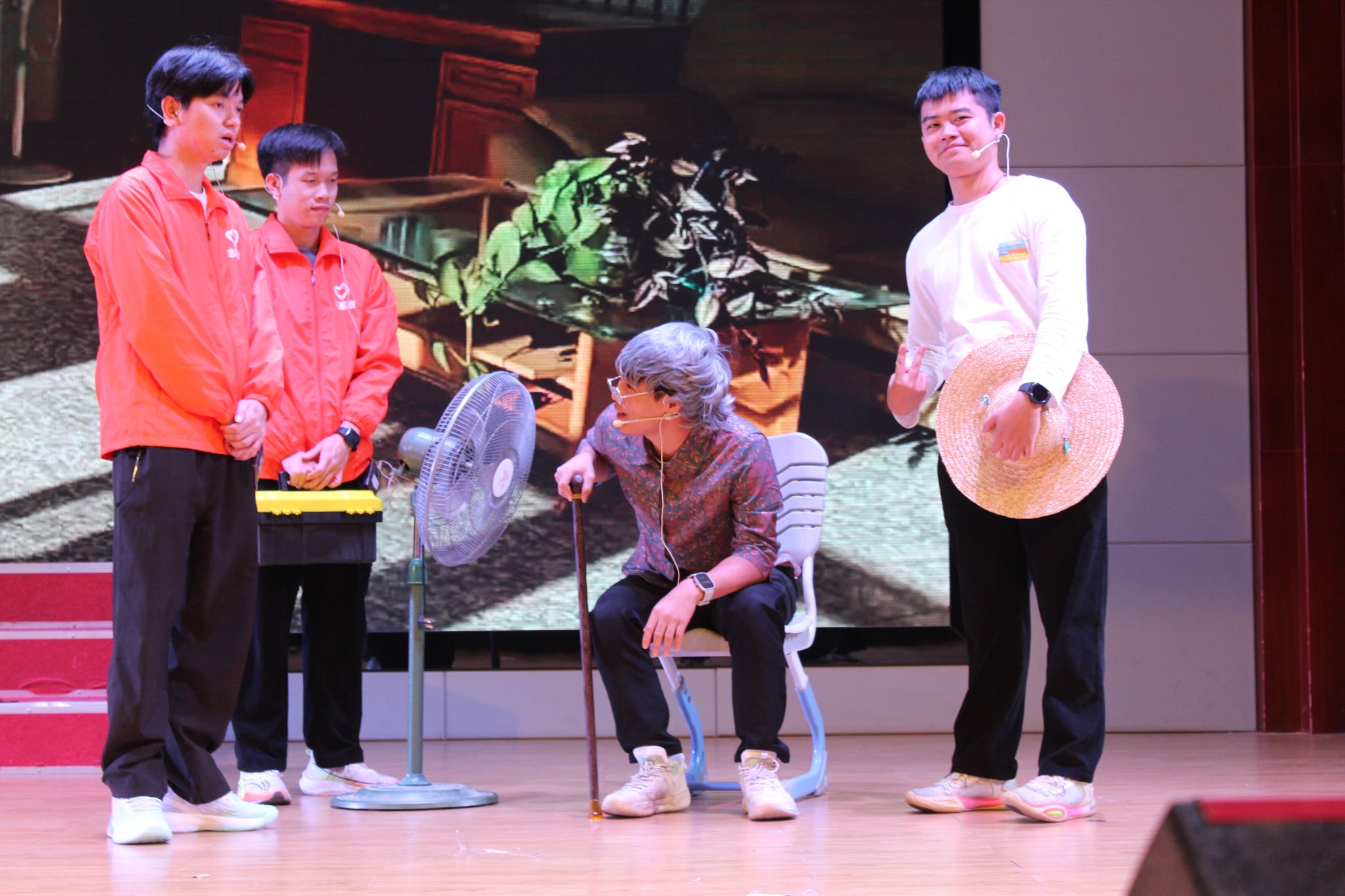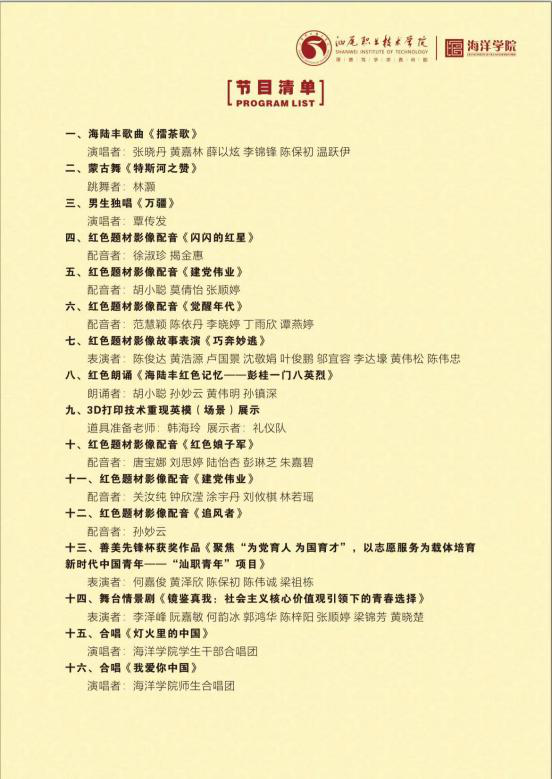 此外,晚会还带来了诸多精彩表演。本地员工张晓丹、陈保初等六人深情演唱了海陆丰民歌《擂茶歌》,展现了汕尾人民的淳朴与热情;21级毕业生林灏同学以一支蒙古舞《特斯河之赞》惊艳四座,舞姿矫健有力,仿佛将观众带入了辽阔的草原;覃传发同学的男生独唱《万疆》歌声悠扬,情感真挚,表达了对祖国的深切热爱。同时,红色题材影像故事表演《巧奔妙逃》以幽默诙谐的方式展现了革命先烈的英勇智慧,现场笑声连连;胡小聪、孙妙云等同学的红色朗诵《海陆丰红色记忆——彭桂一门八英烈》深情饱满,传递了对英烈的无限敬仰与怀念。