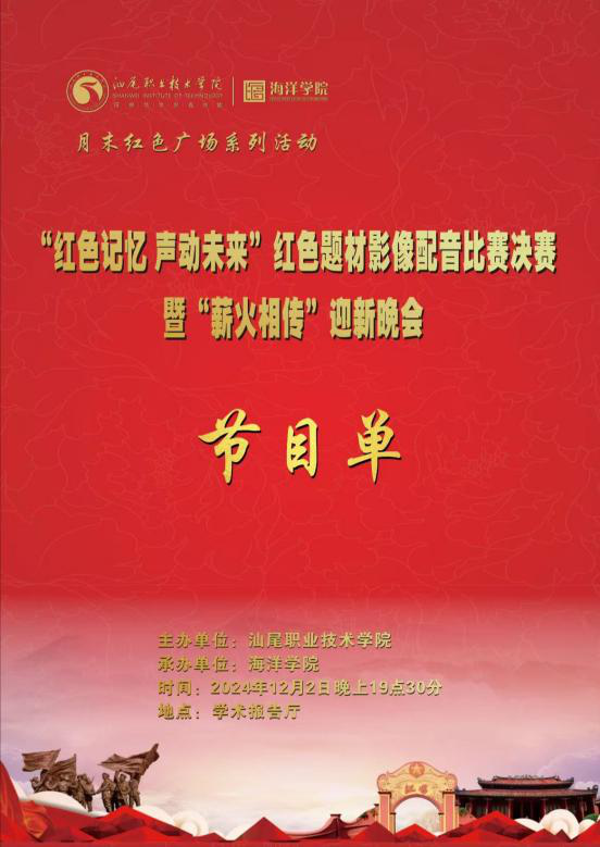 为深入学习习近平新时代中国特色社会主义思想,落实公司党委关于充分利用海陆丰红色文化引领老员工思想政治教育“四级联动”“八全融入”的要求,进一步激发青年员工的爱国情怀和奋斗精神,2024年12月2日晚,公司在学术报告厅举办了月末红色广场系列活动——“红色记忆 声动未来”红色题材影像配音比赛决赛暨“薪火相传”迎新晚会。公司领导,部分师生共500余人参加了本次活动。