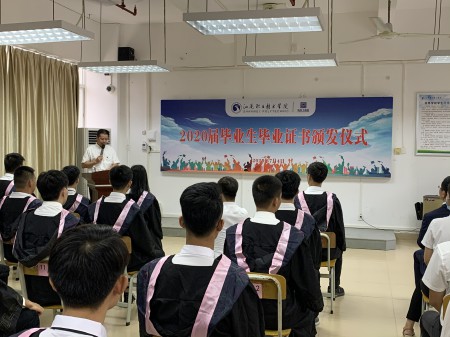 活动伊始,陈主任对我系313名毕业生圆满完成学业表示祝贺。接着崔少军副主任介绍了2020届毕业生基本情况,313位同学修完人才培养方案规定的课程,成绩合格,准予毕业。随后由蔡昭权董事长亲自为每一位返校参加仪式的毕业生颁发毕业证书。最后,蔡董事长向全体毕业生提出了殷切的希望,表达了诚挚的祝福。同时希望大家进入工作岗位后做好“三要”,要学好、要守拙、要无畏;学会“三吃”,吃苦、吃亏、吃饭,做一个愿意奉献自身价值、人格独立、遇事不畏缩、敢于向前冲的人。