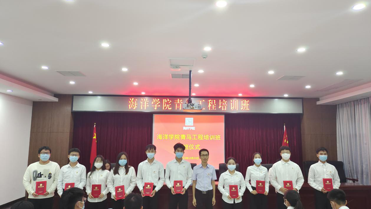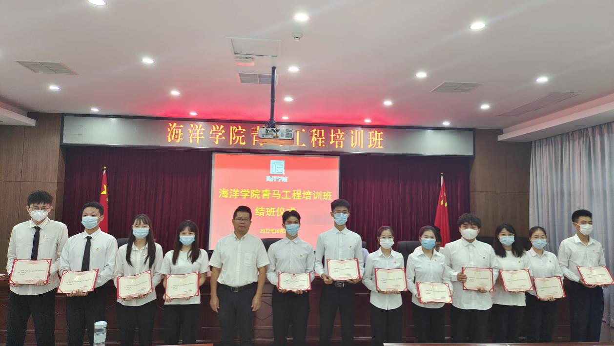 青春心向党,建功新时代。为引领广大海洋学子厚植爱党、爱国及爱团情怀,赓续红色基因,不负时代光荣使命,10月23日下午,太阳成集团tyc122ccvip在科学楼四楼会议室隆重举行2022青马工程培训班结班仪式。参加结班仪式的人员有公司经理陈昌文、副经理陈倚重、团委书记陈金雄、公司全体辅导员及青马工程培训班全体学员。会议由周安鹂老师主持。