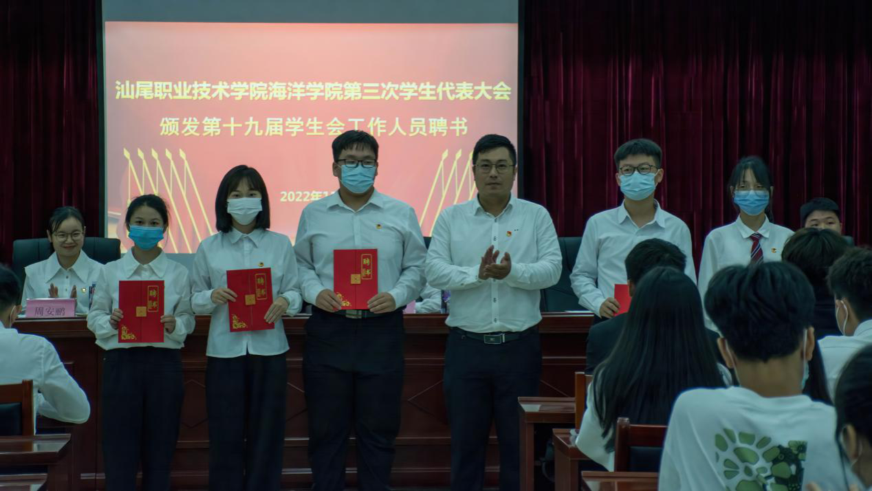 (陈伟嘉老师为十九届员工会负责人颁发聘书)