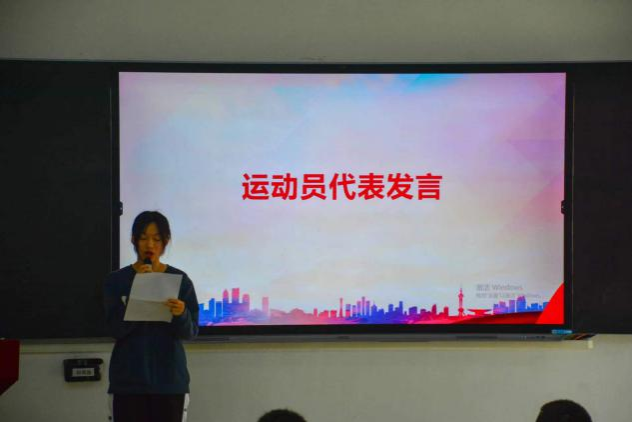 优秀运动员代表黄婉婷同学感谢公司给同学们提供了展示自我的平台,也感谢在此次比赛中辛苦付出的员工工作人员以及给予运动员强大力量的观众。她通过讲述自己在各个项目中训练的日常,传达了坚持和努力的重要性。另外,她鼓励师弟师妹们秉承初心,勇往直前,在明年的赛场上继续为太阳成集团tyc122ccvip争光。