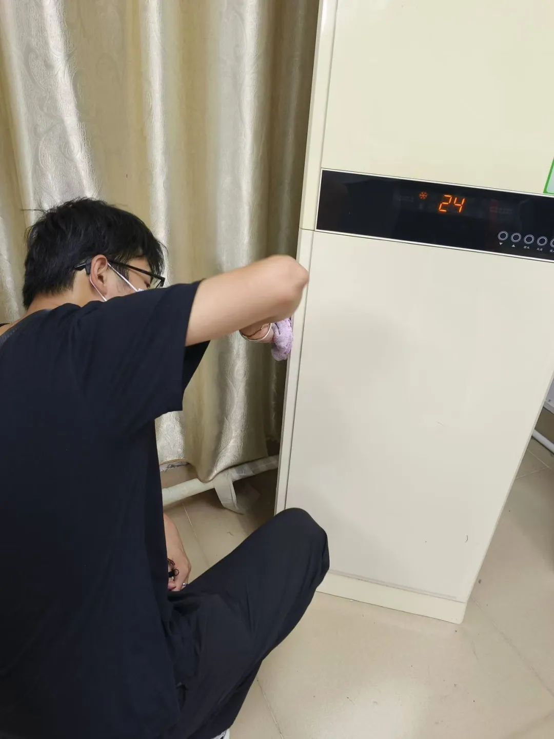 志愿者们先对所有衣物进行了一次彻底的清洗,并把服装拿到室外进行晾晒,又马不停蹄地投入到清洁空调外机的工作中。他们手持抹布等清洁工具,认真空调外机等。每一个角落都不放过,每一处污渍都被仔细清理。他们的专注与认真,让人感受到了对知识的尊重和对学习环境的爱护。