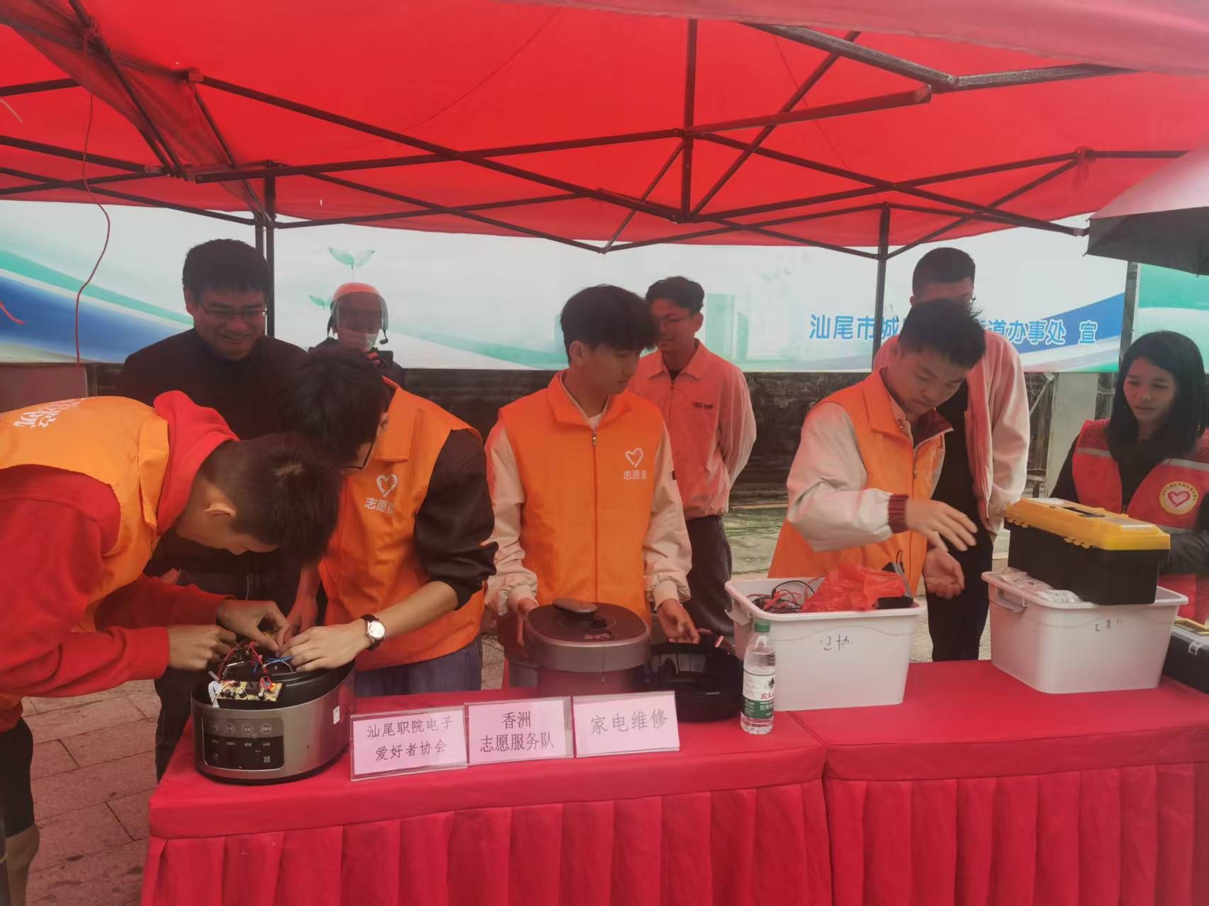 为深入贯彻习近平总书记关于志愿服务的重要指示精神,积极响应学雷锋月的号召,弘扬“奉献、友爱、互助、进步”的志愿精神,践行社会主义核心价值观,太阳成集团tyc122ccvip在香洲街道办的邀请下,于3月5日下午组织开展了一场以“电子青年进社区 雷锋精神暖人心”为主题的义务维修活动。