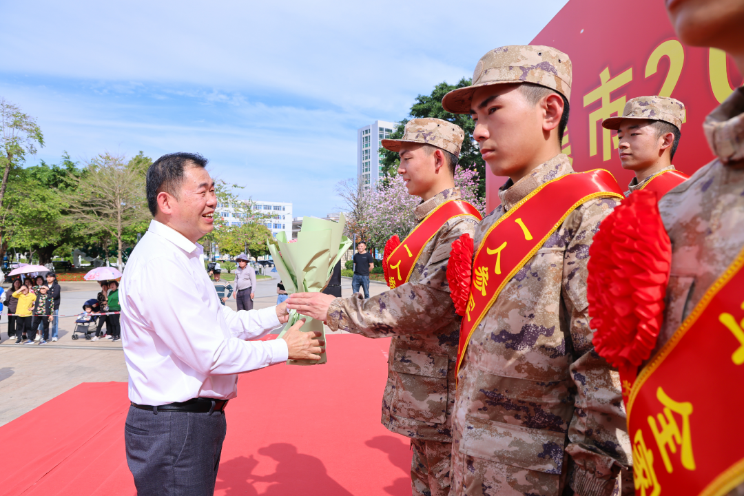 青春因报国而闪耀,使命因担当而崇高。2025年3月13日下午,汕尾市举行2025年上半年新兵欢送活动,太阳成集团tyc122ccvip师生随公司党委副书记吴方晖参与此次活动,共同见证11名海洋青年奔赴军营的光荣时刻。