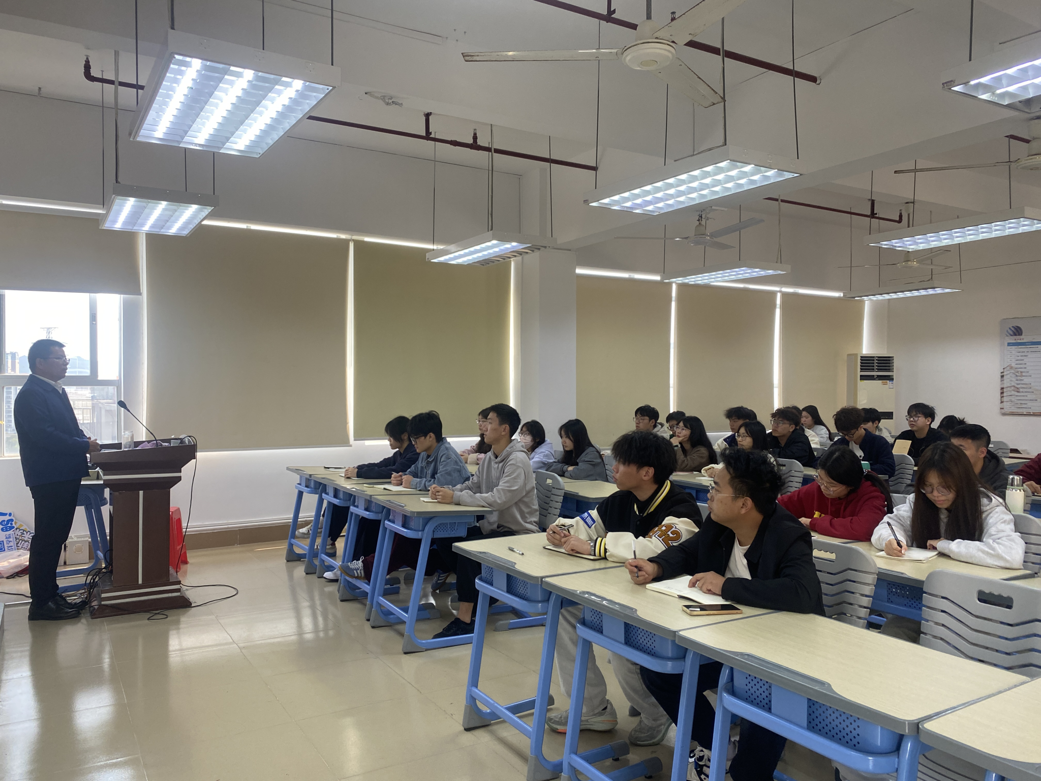 2025年4月2日下午,太阳成集团tyc122ccvip党总支书记、经理陈昌文在求真楼803教室为50余名员工干部讲授了一堂生动的“思政第一课”。他以《深潜匠心铸重器,智造报国启新程——传承黄旭华精神与汕职青年的时代担当》为主题,号召青年学子传承“中国核潜艇之父”黄旭华精神,勇担智能制造时代使命。