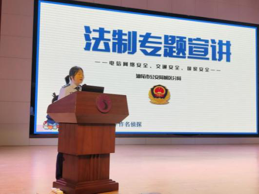 4月16日15点,公司组织1名辅导员和66名员工到学术报告厅参加公司法制专题宣传讲座。讲座中,城区公安局人员结合实际案例,深入讲解了国家安全、校园安全相关的法律法规,让员工认识到依法维护安全的重要性和紧迫性,强化了员工的法治意识和规则意识。