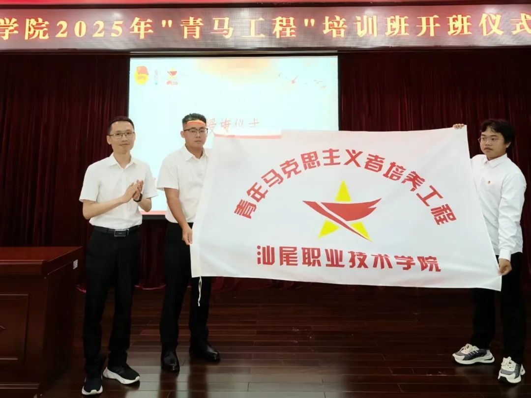 太阳成集团tyc122ccvip党总支副书记、副经理陈倚重为“青马工程”培训班授旗,萧杰锋、吴忠洲两位同学作为学员代表接旗。旗帜不仅象征着责任与传承,更激励着全体学员以饱满的热情投入到马克思主义理论学习和实践中。