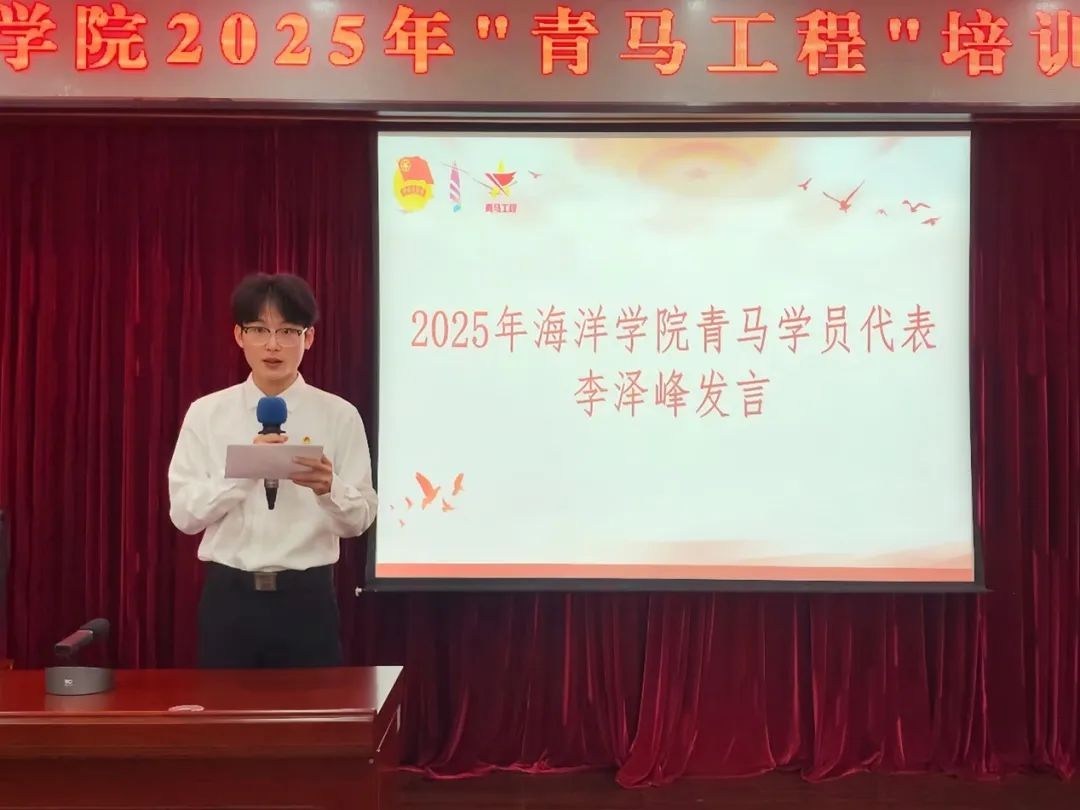 李泽峰同学阐述了对“青马工程”的认识,并代表全体学员作出郑重承诺:将“认真学习、遵守纪律、投身实践、发挥模范带头作用”。最后呼吁大家牢记习近平总书记嘱托,在实现中华民族伟大复兴征程上书写青春华章。