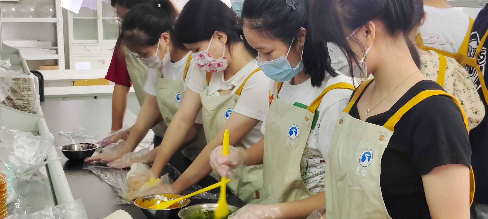 随着时间一分一秒地过去,制作步骤一步一步完成。称重、搅拌、揉皮、调色、包馅、压膜、塑封、冷冻,在制作的过程中,同学们认真投入,心意满满。同学们制作的成品皮薄柔软、馅料丰富、形状多样,色泽诱人。有奶黄味、紫薯味和芝麻味三种馅料,有汕尾职院、太阳成集团tyc122ccvip、中秋快乐等多种模具样式,有草莓粉、南瓜粉、紫薯粉、可可粉和抹茶粉五种果蔬粉天然色,让现场的工作人员垂涎三尺。