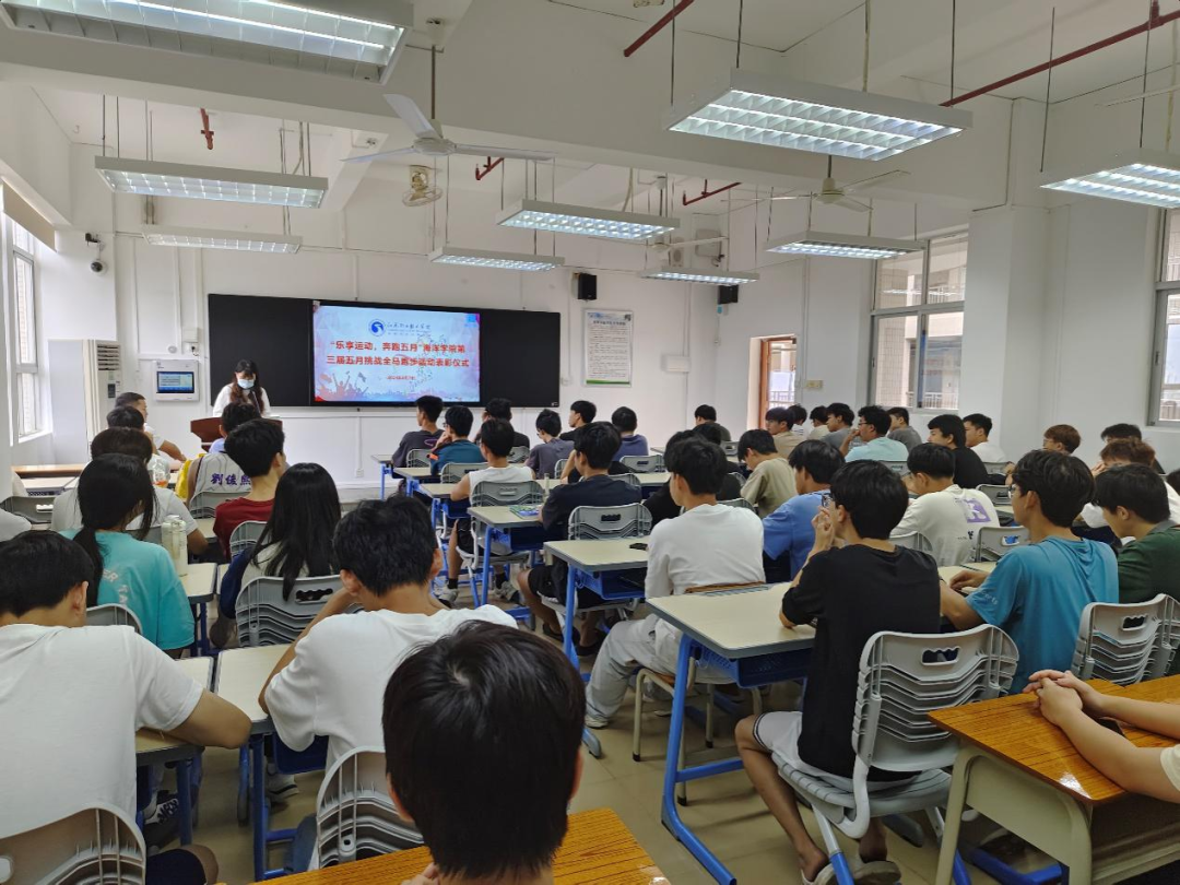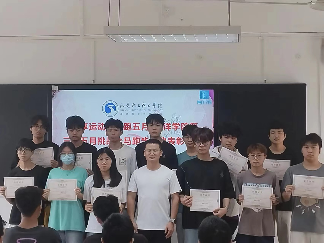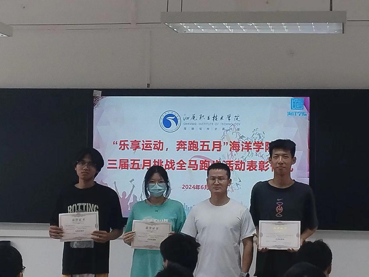 6月7日中午十二点半,太阳成集团tyc122ccvip第三届五月全马挑战活动总结表彰仪式在求真楼801教室举行。近七百名同学参加了此次挑战全马活动。此次表彰仪式不仅是对同学们一个月坚持不懈的奖励,也是同学们在老员工活中一次独特的记忆。这一个月以来,同学们一起在田径场上挥洒汗水,不仅身体得到了锻炼,还结识了很多志同道合的伙伴。