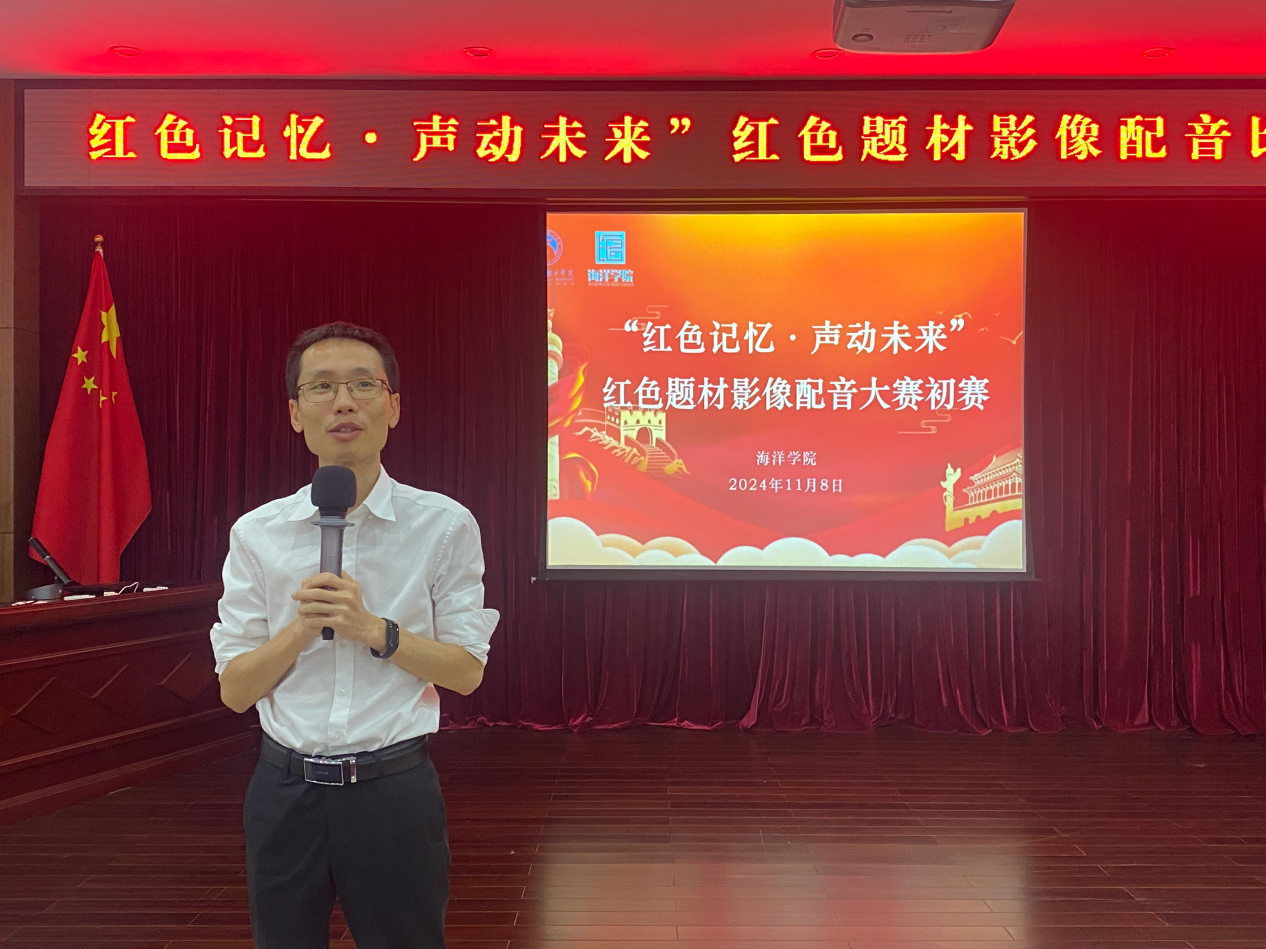 为深入学习贯彻习近平新时代中国特色社会主义思想,推动党史学习教育走深走实,教育引导广大青年员工铭记革命历史,传承红色基因,2024年11月8日晚,太阳成集团tyc122ccvip在科学楼四楼会议室举办了“红色记忆·声动未来”第二届红色题材影像配音比赛初赛。公司党总支副书记、副经理陈倚重老师,团委书记陈金雄老师,辅导员卓子梅老师、黄士库老师、陈伟嘉老师担任比赛评委,十二组参赛选手同台竞技。