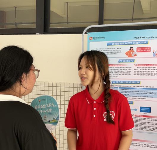走进公司。助梦护航实践队首站走进汕尾市职业技术公司,在校领导的支持和协助下,面向高考班员工开展国家资助和助学贷款政策知识宣讲会。宣讲会现场,实践队向员工们发放了《广东省资助政策宣传手册》《生源地信用助学贷款操作指南》等资料,并对各项资助政策展开详细讲解,宣讲内容深入浅出,现场气氛热烈。在有奖问答和互动环节,同学们踊跃参与,展现了对国家资助政策的关注与热情。宣讲会结束后,实践队在公司教学楼门前摆摊设点,为每一位前来咨询的同学详细解答,并向更多的同学派发宣传材料。